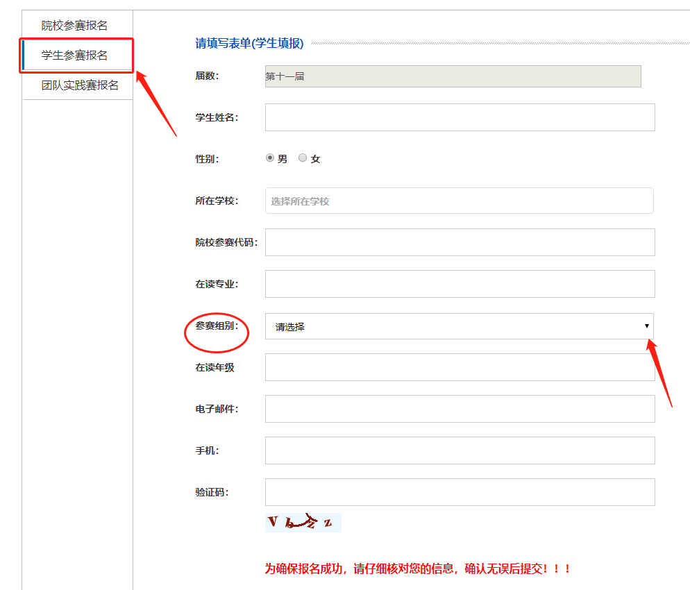 5.务必选择好自己所在的参赛组别,否则视为无效信息。