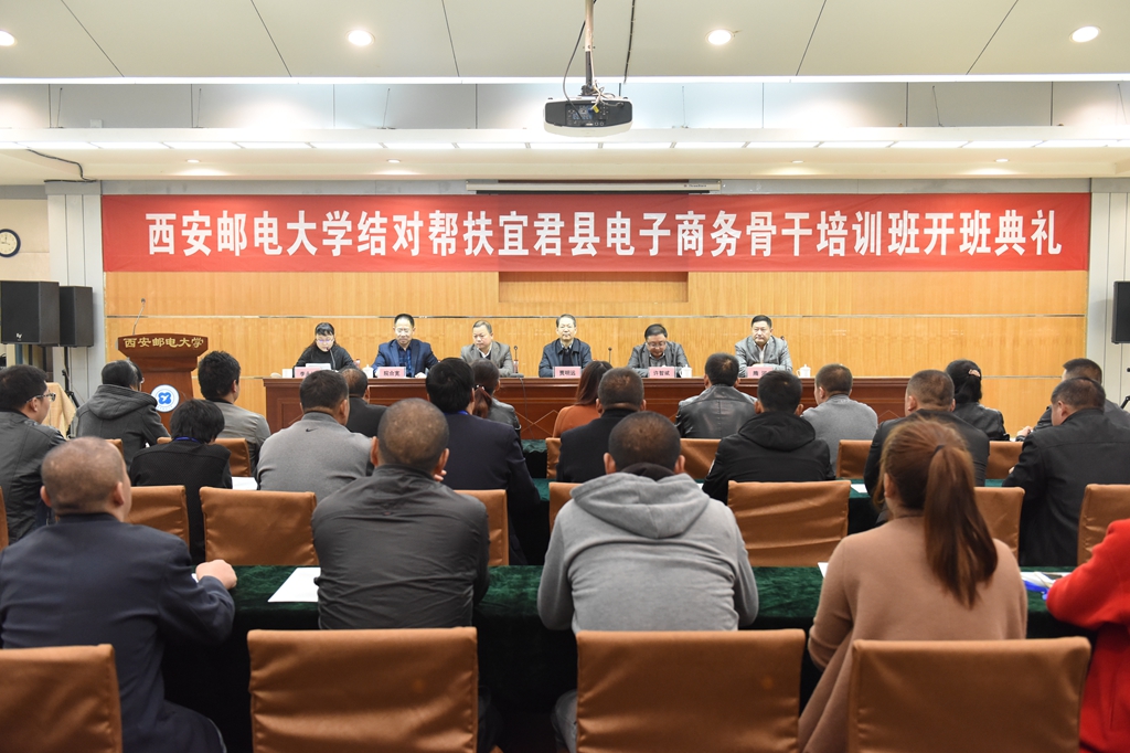 本网讯 10月23日上午,必威西汉姆联结对帮扶宜君县电子商务骨干培训班开班仪式在学术交流中心多功能厅举行。结对帮扶领导小组副组长、副校长贾明远出席并讲话,宜君县副县长赵文斗、宜君县经济贸易局副局长许智斌,必威西汉姆联帮扶办主任、后勤服务产业集团总经理院合宽、帮扶办副主任、校友总会办公室副主任隋河及全体培训班学员参加了仪式,经济与管理学院副院长李永红主持仪式。