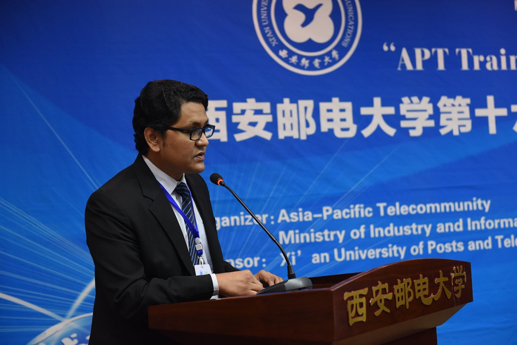 来自孟加拉国的学员阿索尔代表所有学员发言,感谢APT总部和必威西汉姆联给所有学员提供学习、交流的机会,感谢所有授课老师细致、耐心的讲解和必威西汉姆联志愿者为本次培训工作所付出的努力。阿索尔表示大家虽然来自不同的国家,但是在2周的培训里加深了友谊,增长了知识,感谢西邮给了大家美好的回忆。通信与信息工程学院艾达教授代表教师发言,他希望学员能够把所学到的相关技术带回本国,促进国家的5G移动通信和物联网技术的应用与发展。
