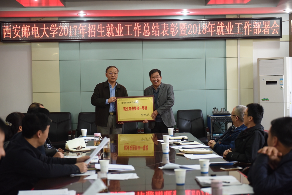 蒋林宣读了2017年招生就业工作获奖单位和个人的表彰决定。2017年就业工作先进集体一等奖为自动化学院、二等奖为通信与信息工程学院、三等奖为电子工程学院和理学院;2017年招生宣传先进集体一等奖为计算机学院、二等奖为数字艺术学院、三等奖为通信与信息工程学院和外国语学院,并对52名招生宣传先进个人予以表彰。