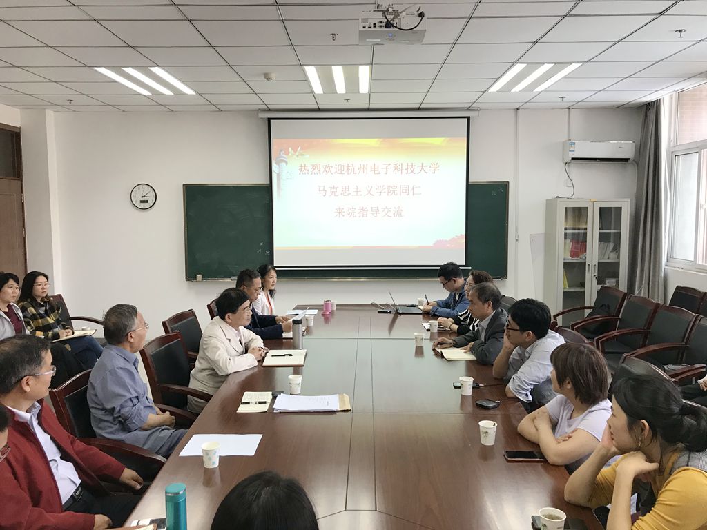 本网讯 (通讯员 马建军)9月20日下午,杭州电子科技大学马克思主义学院副院长黄岩教授一行10人来必威西汉姆联马克思主义学院访问交流。马克思主义学院院长袁武振、副院长袁文伟及各教研室主任、教师代表参加座谈。
