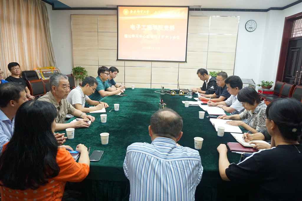 【电子工程学院党委】9月12日中午,电子工程学院召开党委理论学习中心组(扩大)学习会议,安排学院“不忘初心、牢记使命”主题教育。学校主题教育第一巡回指导组组长、纪委副书记、纪委办公室主任刘进海到会指导。学院理论学习中心组成员、党委委员、师生党支部书记、支部委员和系部主任参加会议。学院党委书记吕军战主持会议。会上,学院党委副书记李莉领学了习近平总书记在“不忘初心、牢记使命”主题教育工作会议上的重要讲话精神。学院党委委员、副院长董军传达学习了学校党委理论学习中心组学习(扩大)会议精神。吕军战结合学院工作实际,对“不忘初心、牢记使命”主题教育进行了安排。他要求学院全体党员和党支部要高度重视,切实提高政治站位,充分认识开展“不忘初心、牢记使命”主题教育的重大意义,增强贯彻落实的思想和行动自觉;要精心组织,准确把握主题教育各项要求,夯实责任,细化方案,推动主题教育有力有序开展;要统筹兼顾,把主题教育与中心工作、重点工作、日常工作等紧密结合起来,两手抓、两促进、两不误,确保取得实实在在的成效。刘进海就巡回指导组重点指导的七个方面内容作了阐释,对巡回指导的方式方法做了说明。他强调,要严格对标对表中省要求,按照学校党委安排部署,规定动作做到位,自选动作有特色,力戒形式主义,确保扎实有效。
