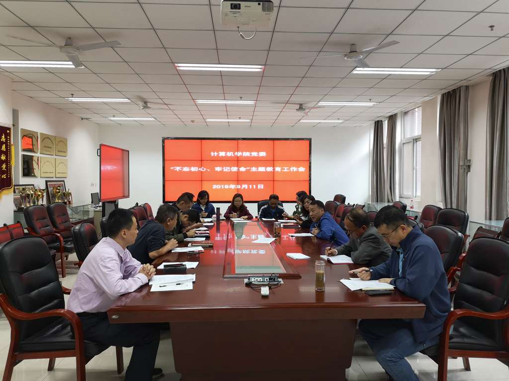 【计算机学院党委】9月11日下午,计算机学院党委召开理论学习中心组(扩大)学习会议,部署安排学院“不忘初心、牢记使命”主题教育,学院党委委员、处科级干部、支部书记、系部主任,学校巡回指导组第四组联络员张青平参加会议。学院党委书记彭程主持会议。彭程领学了习近平总书记在“不忘初心、牢记使命”主题教育工作会议上的重要讲话精神,传达了学校党委理论学习中心组(扩大)学习会议精神,对学院“不忘初心、牢记使命”主题教育进行了安排部署。他要求全体党员提高政治站位,要把“守初心、担使命、找差距、抓落实”的总要求贯穿主题教育始终,坚持问题导向,积极深入基层,切实解决工作中存在的问题和难点,扎扎实实把本次主题教育引向深入,做到主题教育和中心工作两不误两促进。与会人员表示将严格按照学校和学院的安排部署,认真开展好主题教育,努力实现理论学习有收获、思想政治受洗礼、干事创业敢担当、情系师生解难题、清正廉洁作表率。