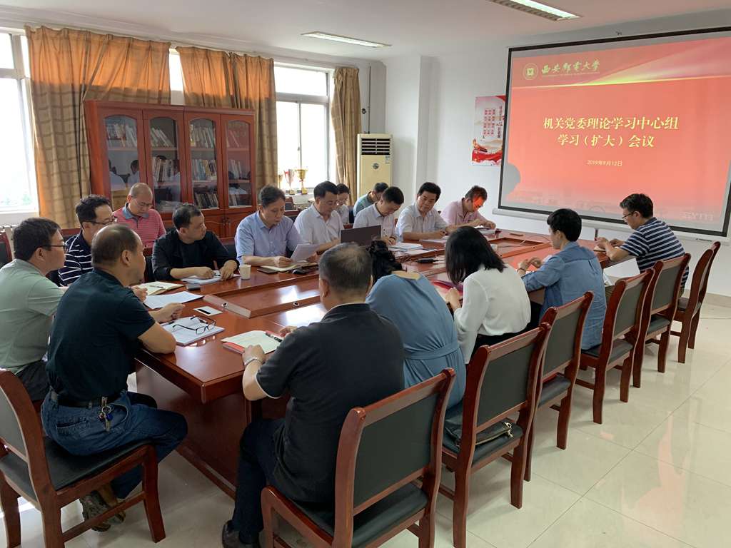 本网讯 9月10下午,bw必威西汉姆联官方网站在长安校区办公楼第一会议室召开党委理论学习中心组(扩大)学习会议,安排部署“不忘初心、牢记使命”主题教育。省委第六巡回指导组组长、省科协副主席丁德科,指导组副组长、西安美术学院党委副书记任晓峰,指导组成员卢杨、贺新建、颜高出席会议。全体校领导、校党委委员,校内各党委、党总支、直属党支部主要负责人,各部门、各单位主要负责人参加会议。会议学习了习近平总书记在“不忘初心、牢记使命”主题教育工作会议上的重要讲话精神,对必威西汉姆联“不忘初心、牢记使命”主题教育工作进行了安排部署。