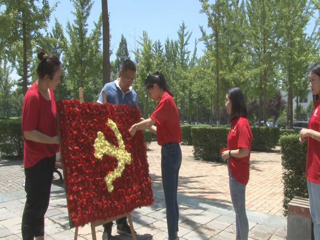 团员青年用一支支鲜花绘出一面党旗,表达了对党的热爱之情,并为我们伟大的中国共产党送上最真挚的祝福。