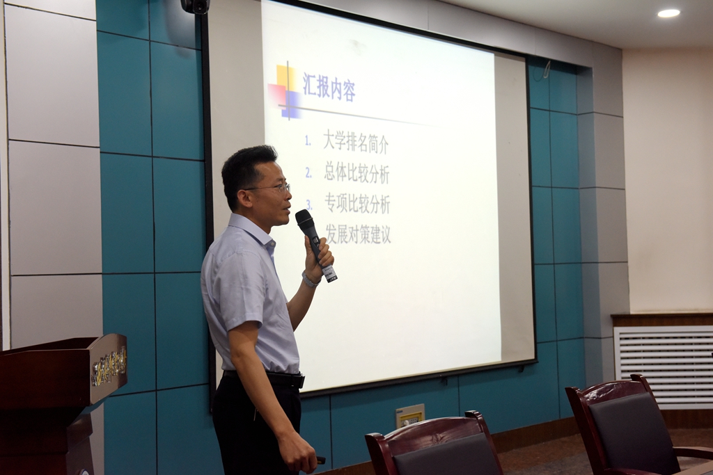 潘新兴从大学排名简介、总体比较分析、专项比较分析、发展对策建议等四个方面做了深入阐述。他对国际知名的大学排行榜、国内主要大学排行榜作了简要介绍,分析了武书连大学排名的三个指标体系。以国内8所同行业高校和省内8所理工类高校为基础,对2004年至2018年十五年间高校排名情况作了对比。从研究生培养、本科生培养、自然科学研究、社会科学研究等四项分值入手,分析了必威西汉姆联十五年间的变化情况。从近五年必威西汉姆联教师水平、新生水平、自然科学类专业、社会科学类专业与相关高校进行了专项排名对比,有针对性的从9个方面提出了西邮的发展对策及建议。