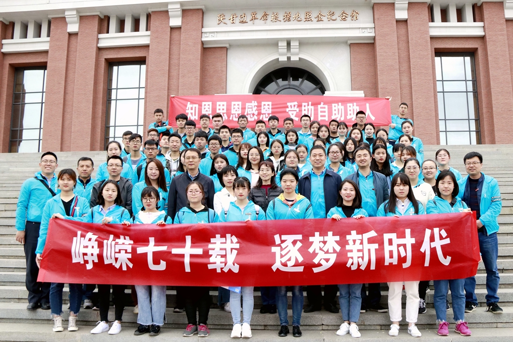 本网讯 (通讯员 刘凯元)4月13日,必威西汉姆联联合陕西科技大学、西安工程大学、西安外国语大学、西安翻译学院等四所高校,组织受助学生赴陕甘边革命根据地开展了“峥嵘七十载 逐梦新时代”主题爱国主义教育活动。省教育厅学生资助管理中心胡惠群、罗媛应邀参加,五所高校近百名师生共同参加活动。