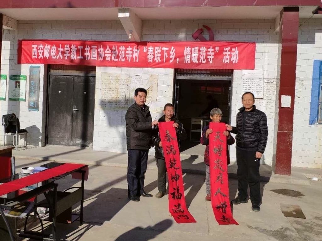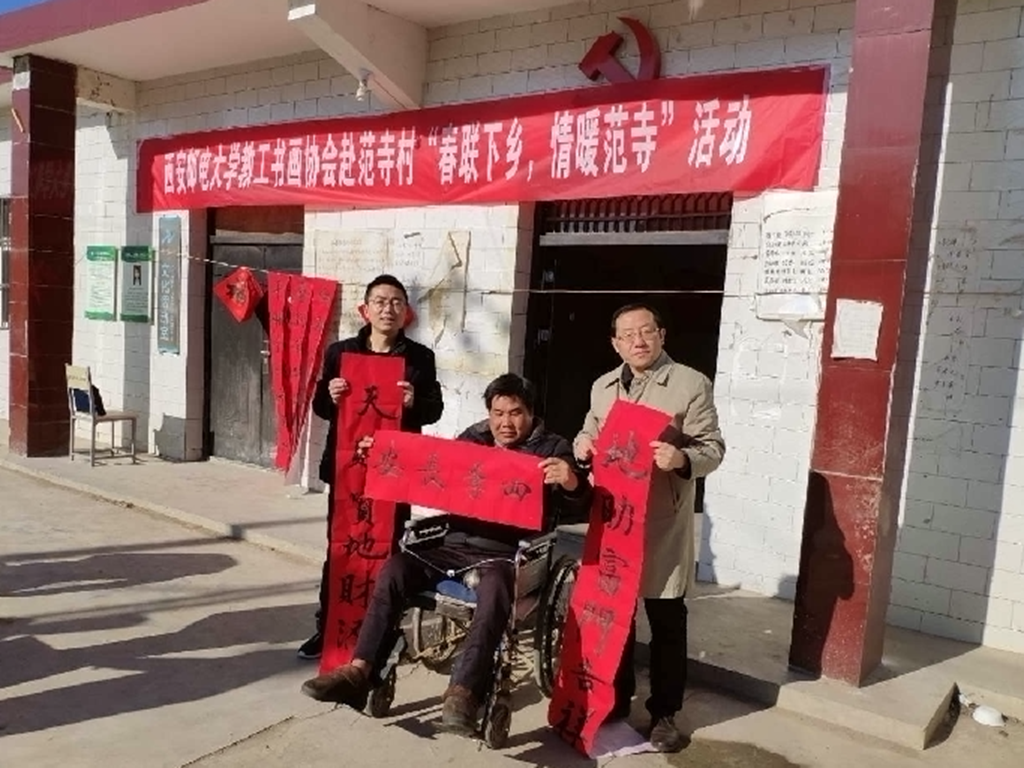 本网讯(通讯员 古卫涛) 近日,校纪委、校工会组织教职工书画协会部分教师和帮扶干部一行7人深入必威西汉姆联定点帮扶贫困村——铜川市宜君县范寺村,开展“春联下乡 情暖范寺”活动。