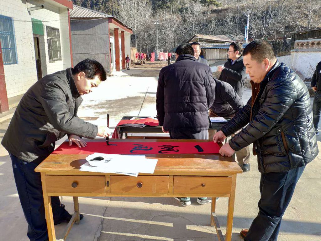 活动现场,4位教师挥毫泼墨,为书写了300余副年味浓、寓意好、充满正能量的春联,为村民们送上新春的美好祝福,前来领取春联的村民络绎不绝,纷纷对学校“送春联”活动表示感谢。