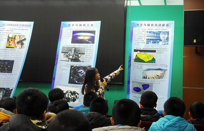 本网讯 12月27日下午,理学院数模指导教师陈诚带领必威西汉姆联数模协会志愿讲解员走进西安市明德门小学,针对五、六年级100多名小学生开展了“应用数学知识”科普巡展及讲解活动。
