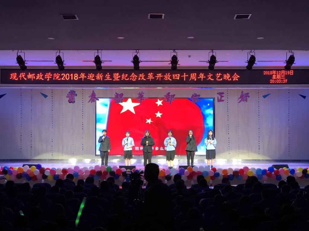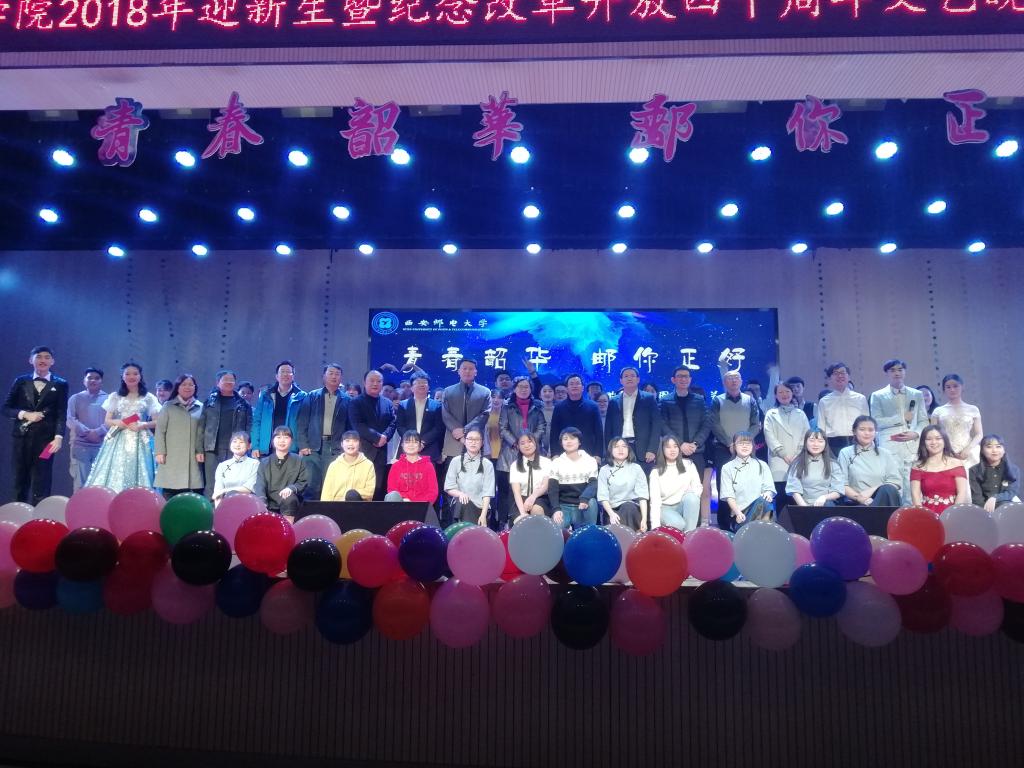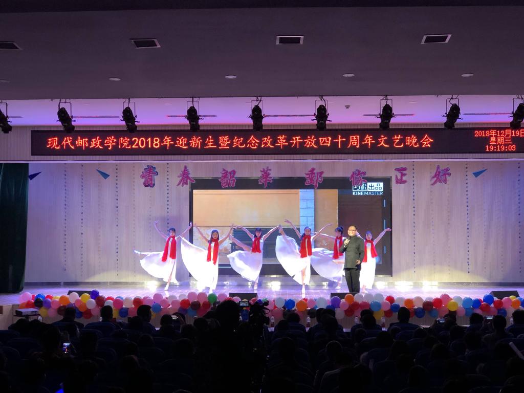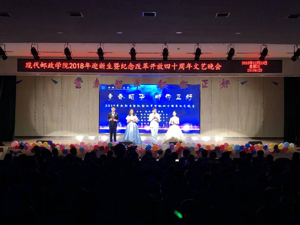 本网讯 12月19日晚,现代邮政学院2018年“青春韶华,邮你正好”迎新生暨庆祝改革开放四十周年文艺晚会在雁塔校区图书馆五楼礼堂举行。中邮保险陕西分公司副总经理张涛,西安顺丰速运总经理张宗坤、人力资源部总经理陈振华,必威西汉姆联教务处、学工部、团委、通信与信息工程学院、自动化学院、经济与管理学院、外国语学院、数字艺术学院、继续教育学院、现代邮政学院负责人和师生一起观看晚会。