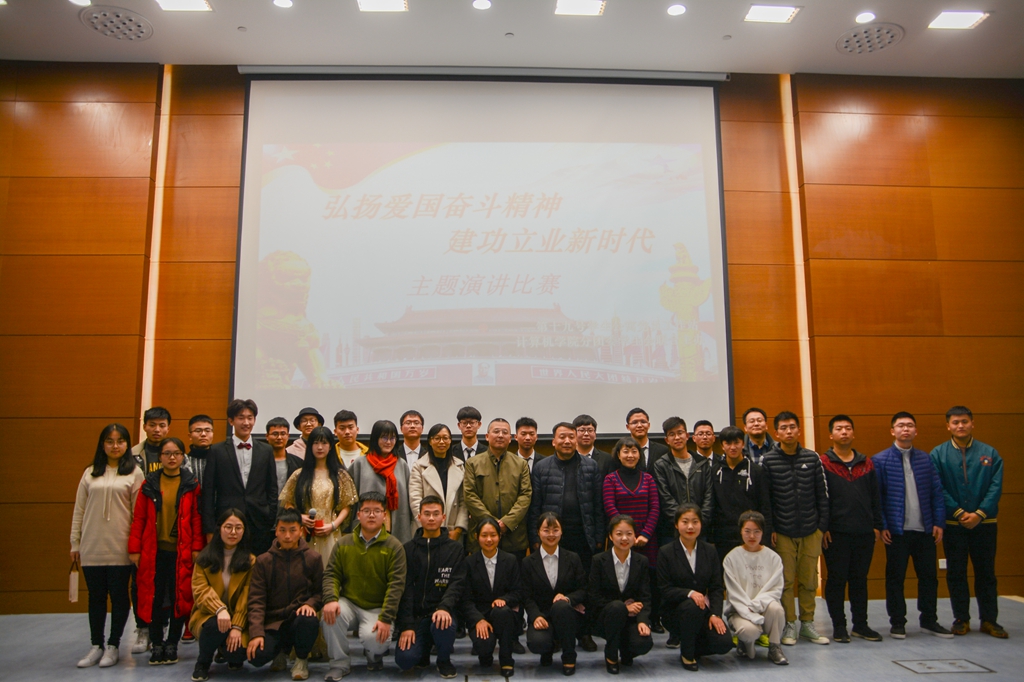 本网讯 11月29日晚,十九号学生公寓党员工作站主办,计算机学院分团委学生会承办的"弘扬爱国奋斗精神,建功立业新时代"主题演讲比赛在东区逸夫报告厅举行。党委宣传部、学生工作部、计算机学院相关负责人,计算机学院全体辅导员以及党员工作站联席委员会、校学生会、大学生记者团、各党员工作站代表参加活动。