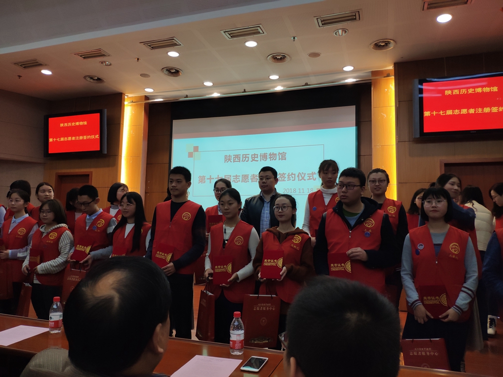 本网讯 11月18日上午,陕西历史博物馆第十七届志愿者注册签约仪式在陕西历史博物馆多功能厅举行。陕西历史博物馆党委书记、馆长强跃及19所高校领导和优秀志愿者共300余人参加签约仪式。