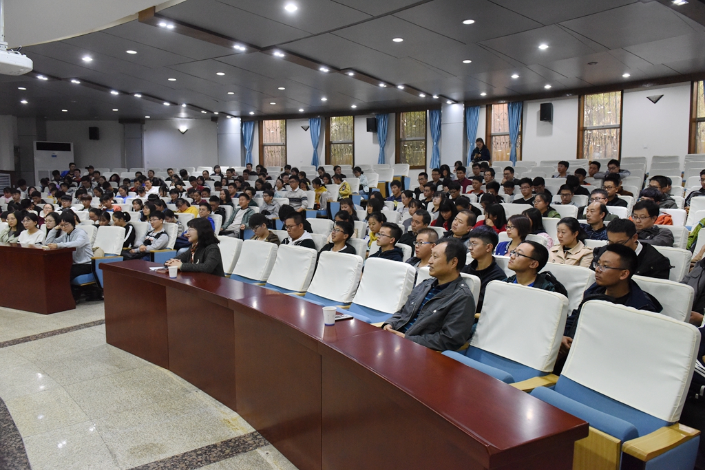 本网讯 10月16日下午,理学院在长安校区办公楼附一楼举办“弘扬爱国奋斗精神、建功立业新时代”活动——西邮发展史专题报告会,邀请原西安邮电学院党委副书记、副院长马青俊为理学院全体教师和2016级、2018级学生讲述西邮发展史,院党委书记兼副院长杨爽主持报告会。