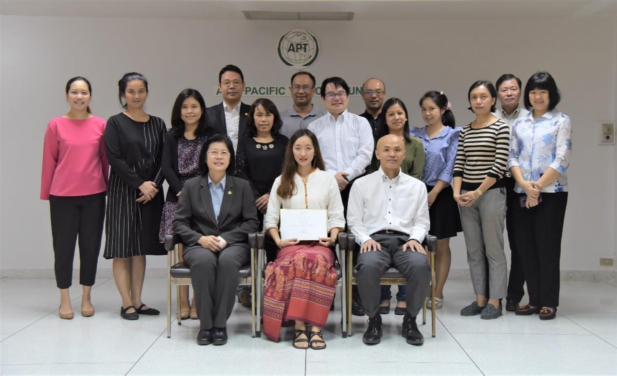 本网讯 近日,必威西汉姆联获国家留学基金委国际组织实习项目资助的通信与信息工程学院16级研究生韩懿斐顺利完成了在亚太电信组织曼谷总部为期三个月的实习。