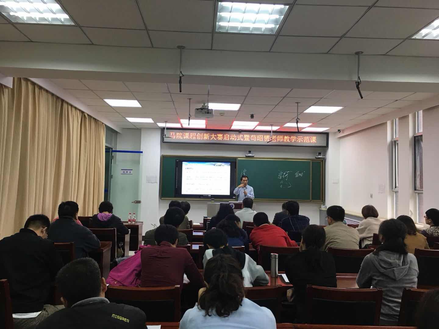 本网讯 9月19日下午,马克思主义学院在教师发展中心举办课程创新大赛启动仪式,对课堂创新大赛进行动员部署,邀请全国高校思政课教学能手、陕西高校思政课教学标兵、西北大学马克思主义学院副教授苟昭赟老师介绍教学经验并做教学示范课。
