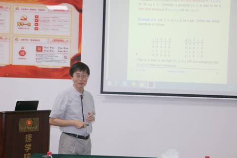 Hee Sik Kim为韩国汉阳大学教授,担任国际期刊《International Review of Fuzzy Mathematics》执行总编,以及《Journal of Approximate Reasoning》等4个国际期刊编委。Kim教授在BCK/BCI-代数、模糊代数、偏序集、半环与群胚理论等方面发表研究论文250余篇,与美国Neggers教授合作出版了《Basic Posets》等专著。他作了题为《群胚中的分数集和解集》的学术报告,引入了群胚中的分数集和解集等概念,获得了这些概念的多种刻画,并将其应用于研究群胚和预d-代数(pre-d-algebra)。