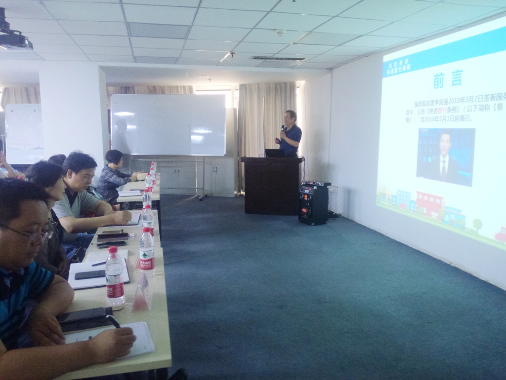为确保《快递暂行条例》宣贯质量,现代邮政学院薛蓉娜院长负责组建了《快递暂行条例》宣贯团队,团队成员来自现代邮政学院、陕西省邮政管理局和西安市交通局。本次主讲教师周海明从《快递暂行条例》的立法背景、立法思路等,并结合工作案例,对《快递暂行条例》逐条进行分析、解读。随后,《快递暂行条例》宣讲会还将在陕西全省范围内的重点快递企业陆续展开,这将进一步提升现代邮政学院与政企的深度合作。