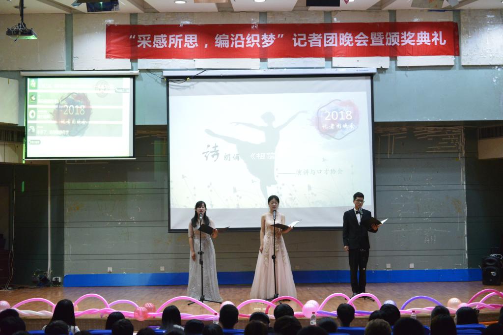 颁奖晚会以“采感所思,编沿织梦”为主题,由大学生记者团学生自编自演的歌曲演唱、诗歌朗诵、古典舞蹈等节目为观众呈现了一场精彩纷呈的视觉盛宴。富有激情的诗歌朗诵《相信未来》赢得阵阵掌声,歌曲《李白》和西北政法大学汉服社带来的舞蹈《化蝶归》将晚会的气氛推向了高潮。