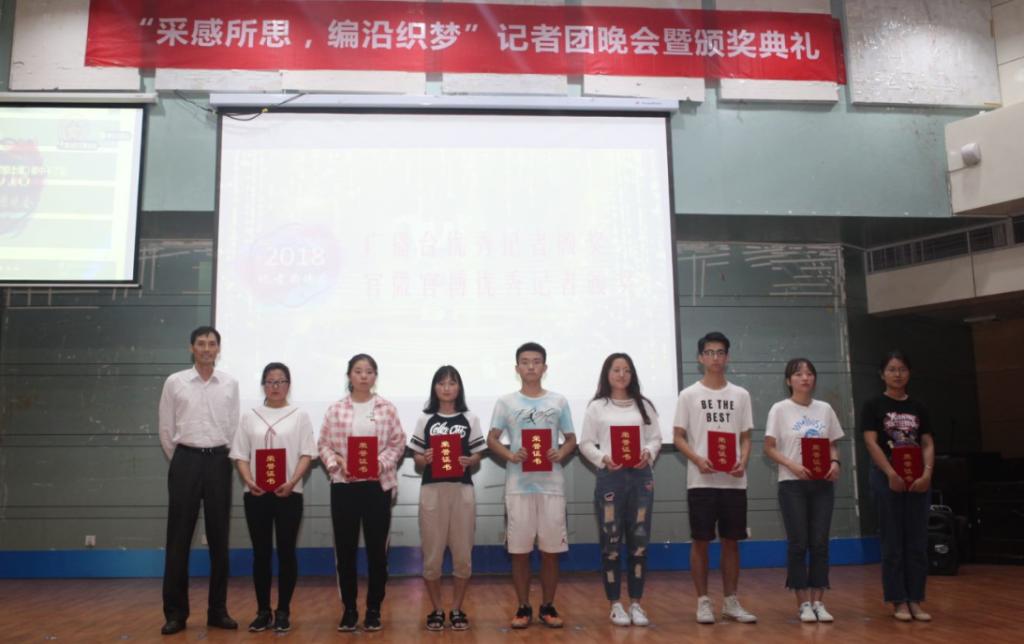 姜毅龙为获得“广播台优秀记者”、“微博微信优秀记者”的同学颁奖,田卫蒙为记者团获得“优秀团干”和“记者团优秀记者”的同学颁奖。