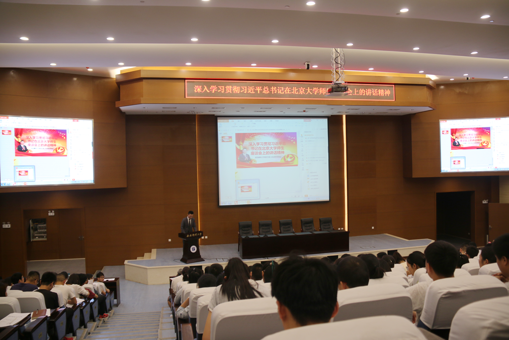 本网讯 5月3日,研究生院组织17级全体研究生、15级和16级学生干部代表及14号和17号党员工作站部分站务委员在东区报告厅深入学习习近平总书记在北京大学师生座谈会上的重要讲话精神,研究生院、马克思主义学院相关负责人参加学习。
