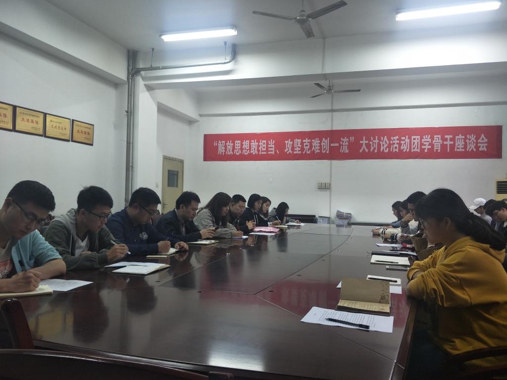 本网讯 4月24日,校团委在长安校区学工部会议室召开“解放思想敢担当、攻坚克难创一流”大讨论活动团学骨干座谈会,校团委各学生组织指导教师和11个学生组织主席团成员参加座谈会,会议由校团委组织部部长张瑞主持。