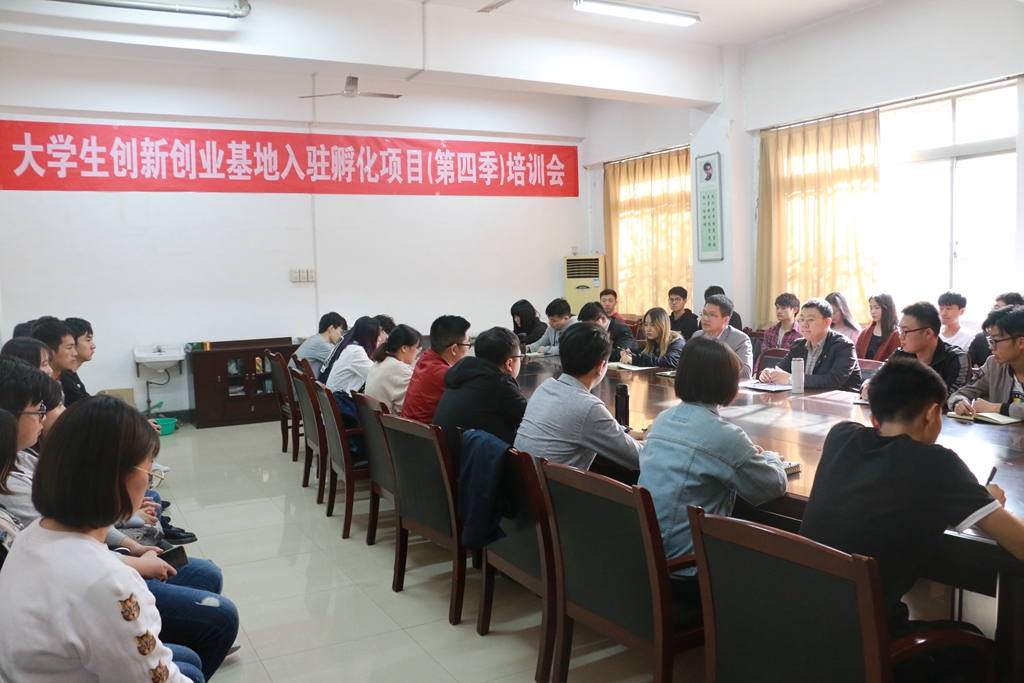本网讯 3月28日,大学生创新创业基地入驻孵化项目(第四季)培训会在学工部会议室召开,校团委、校科协相关负责人,20支入驻孵化项目团队主创作者及学生代表参加会议。