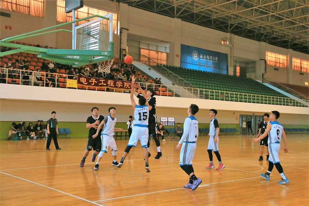 揭幕战在通信与信息工程学院与电子工程学院之间展开。比赛开始后,双方进攻旗鼓相当,长传,投篮,盖帽、抢断,双方你来我往,互不相让,比分也始终紧咬。比赛最后一节,通院凭借8号和11号的精彩快攻,将比分渐渐拉开。最终通院以44:30的比分取得了比赛的胜利。