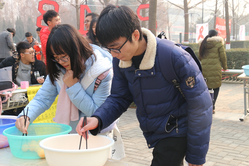 在长安校区银杏林,由学工部、校团委主办,校学生会承办的2018年迎新年游艺会活动吸引了广大同学积极参与。活动设置了“投壶”、“你画我猜”等多项富有乐趣的游艺项目,以及传统的猜灯谜环节。活动现场掌声不断,气氛热烈。