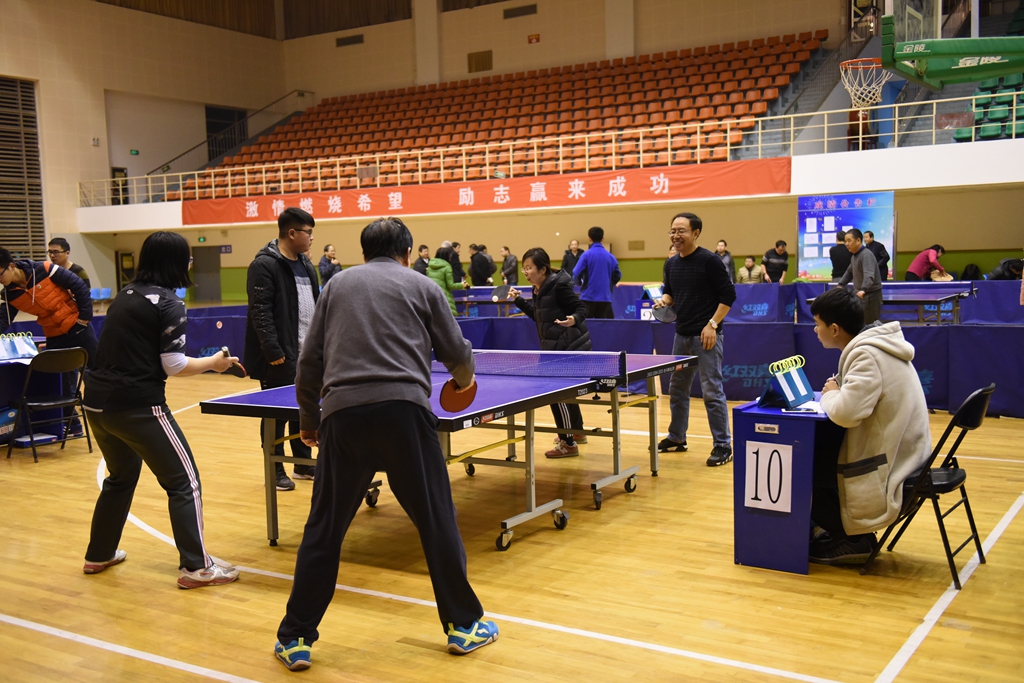 本次比赛由校工会主办,校体育部、教职工乒乓球协会协办,17个分工会参赛。比赛为期2天,共36场比赛,采用五场三胜团体赛制。场上队员奋勇拼搏,场下师生热情鼓劲,比赛为广大教职工提供了良好的交流平台,展示了教职工良好的精神风貌,提高了教职工的凝聚力。